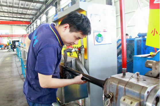 與其他組裝式的產(chǎn)品不同,后期檢查出現(xiàn)質(zhì)量問題,可以拆開重裝或更換零件,電纜的生產(chǎn)制造任何一個部件或工藝工序沒有達(dá)標(biāo),后期是無法挽回和彌補(bǔ)的。因此,電纜生產(chǎn)線上的每一個操作者都是關(guān)鍵人物。作為機(jī)組組長的劉學(xué)文,深知自己肩上的重任,一旦進(jìn)入車間,他便絲毫不敢懈怠,總是在生產(chǎn)線之間來回走動,反復(fù)查看機(jī)器設(shè)備的運轉(zhuǎn)情況、第一時間查看電纜成品質(zhì)量,快速發(fā)現(xiàn)問題,解決問題,避免不良品流入下一道工序,不僅保障了電纜質(zhì)量,而且有效提高了電纜的生產(chǎn)效率。