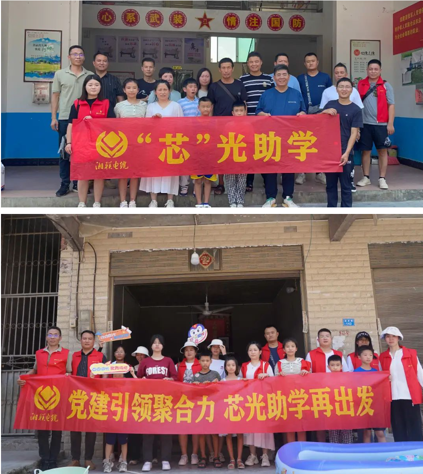 鄉村振興,教育先行。為深入貫徹習近平新時代中國特色社會主義思想主題教育,助力鄉村振興,在開學來臨之際,湘聯電纜攜手經銷商客戶于8月17日走進湘西土家族苗族自治州龍山縣苗兒灘鎮開展2023年度“芯”光助學活動,傳遞關愛青少年兒童成長正能量。