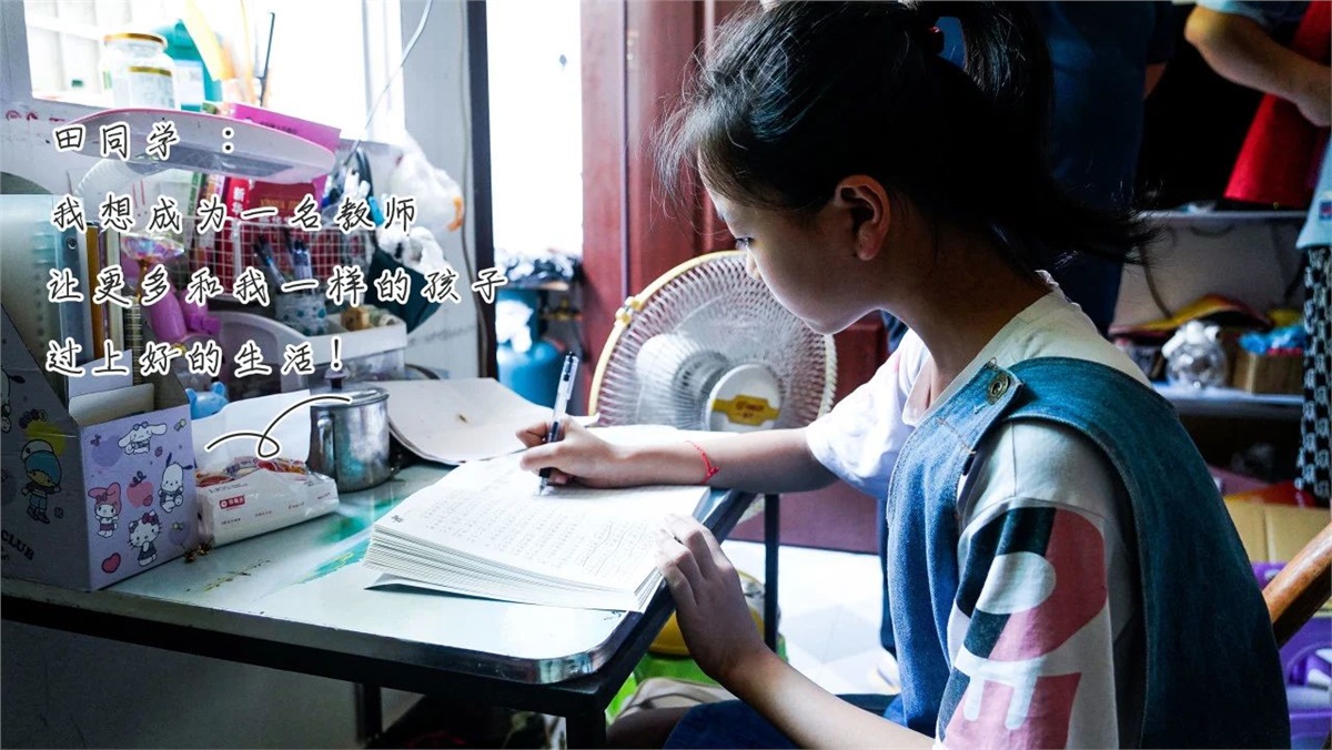 田同學:12歲,母親患非小細胞肺癌,需要長期治療,家中還有讀幼兒園的弟弟,父親在家附近打零工,家庭負擔重,經濟條件拮據。田同學希望自己能夠努力學習,考一個好大學,幫助父親緩解家庭重擔。