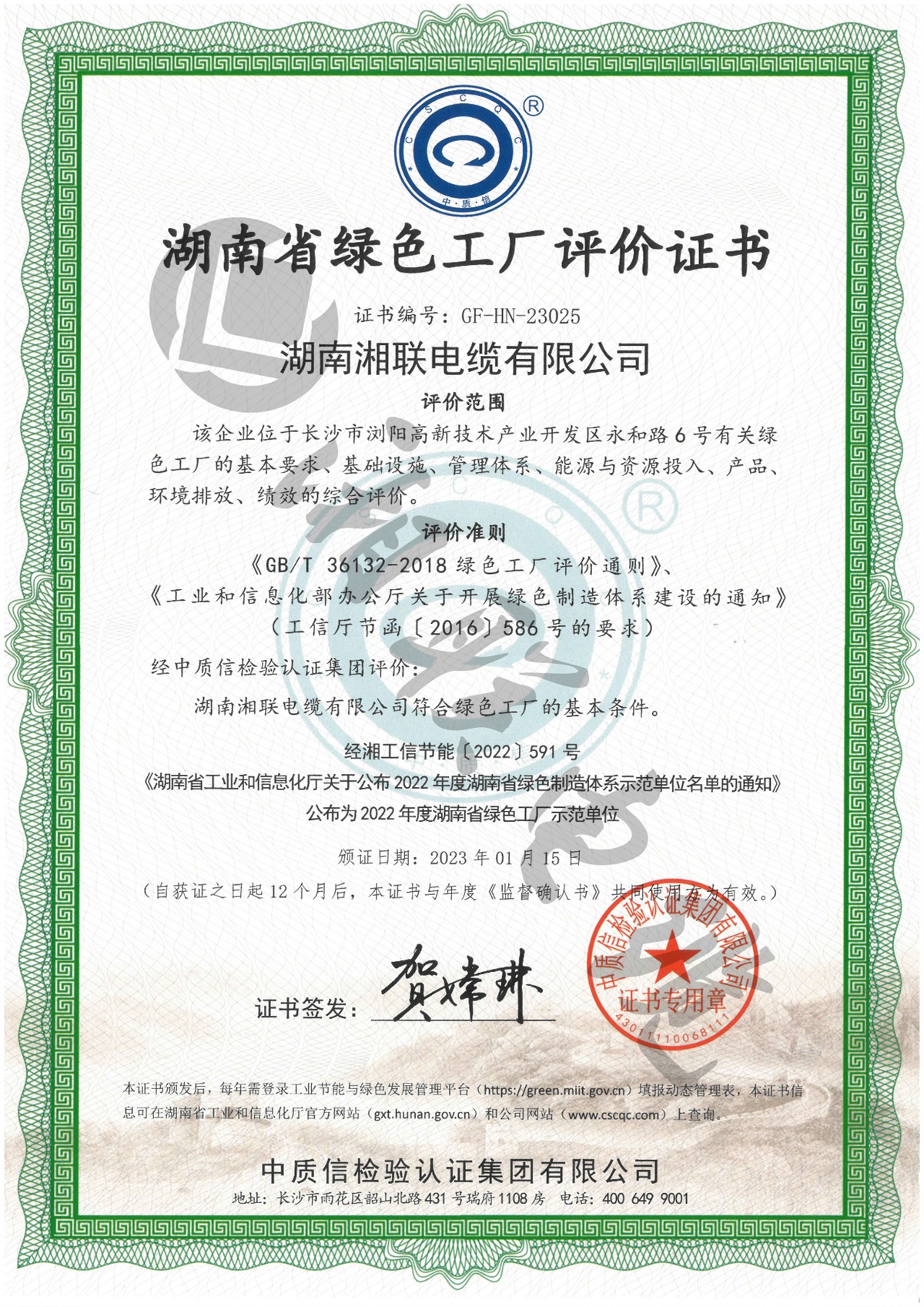 1月,湖南省工信廳公示了2023年湖南省綠色制造體系示范單位名單,湘聯(lián)電纜憑借綠色完善的體制機(jī)制獲評湖南省省級“綠色工廠”稱號。