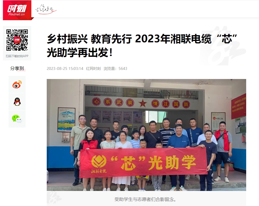 2023年,為增強(qiáng)員工的思想道德建設(shè),湘聯(lián)電纜有序開展公益助學(xué)、懷念袁隆平院士、關(guān)愛老人等活動,多次被瀟湘晨報、湖北新聞、紅網(wǎng)、澎湃新聞等知名媒體推薦報道。